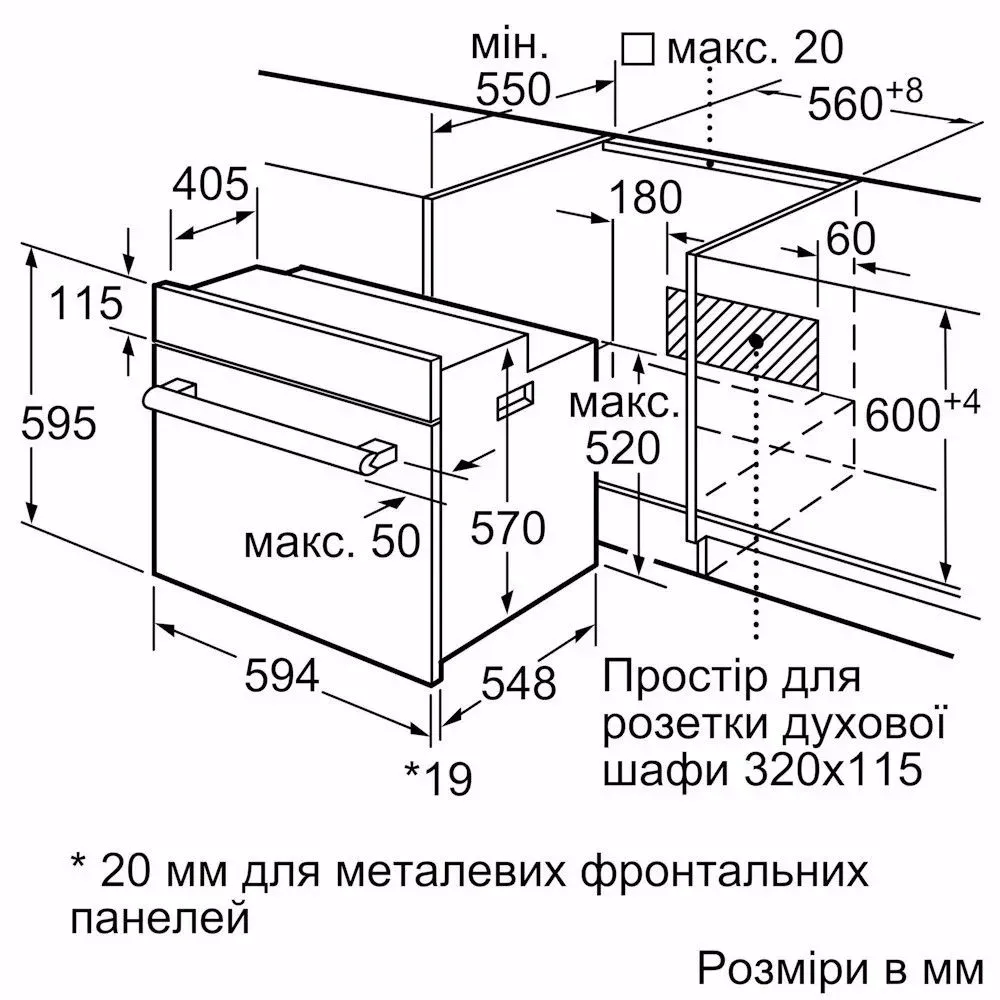 Ширина встраивания, см