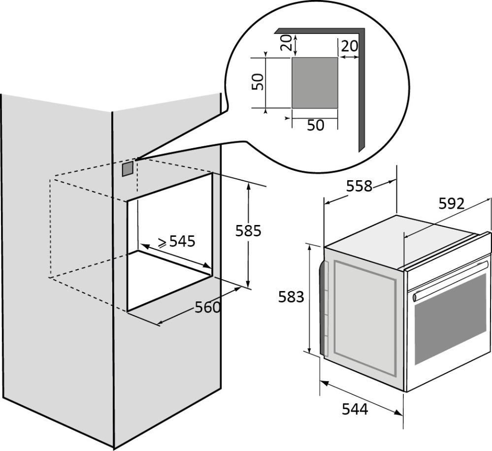 Размеры ниши для встраивания ВxШxГ (мм)585x560x550