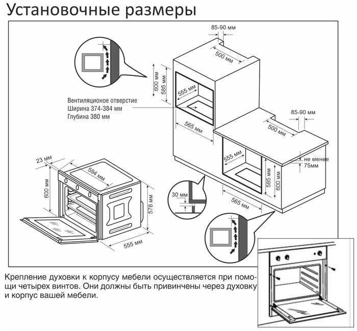 - духовой шкаф, 2 противня, решетка, комплект для установки, инструкция, упаковка