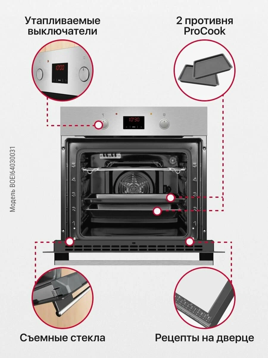 верхний нагреватель 900 Вт; нижний нагреватель 1100 Вт; 5 уровней установки противня; длина шнура 150 см; тип часов: электронные; вес 26.6 кг