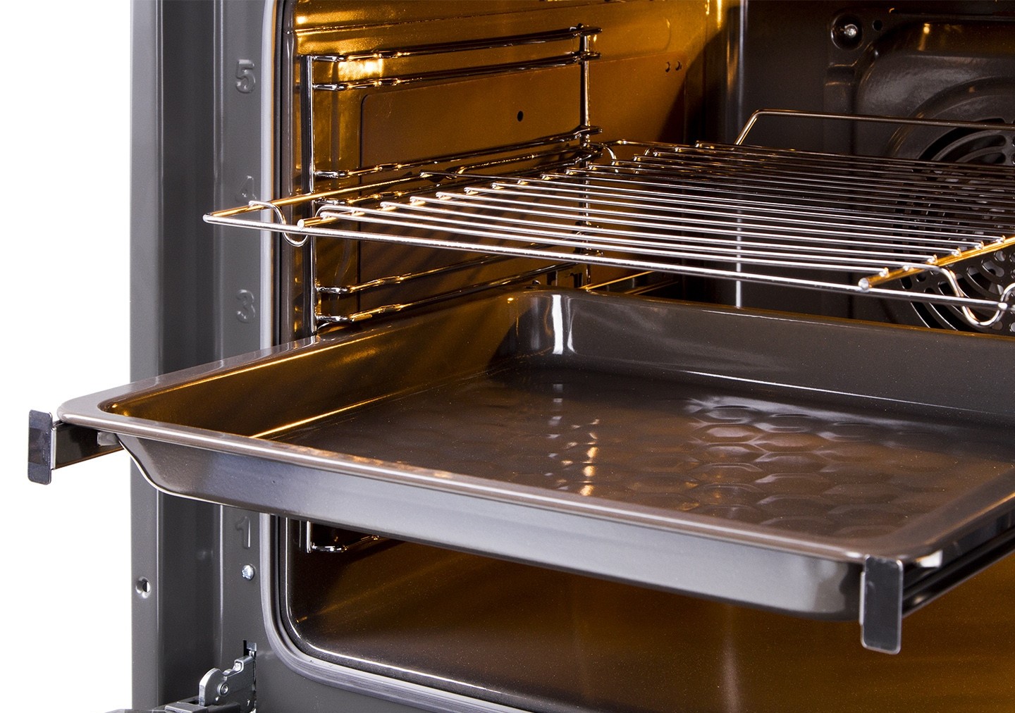 Это решение сохраняет внутреннюю часть чистой, а так же обеспечивает простоту в использовании, так как за гладкими поверхностями легче ухаживать. Мы используем легко очищающаяся эмаль в качестве стандартной во всех наших духовых шкафах.