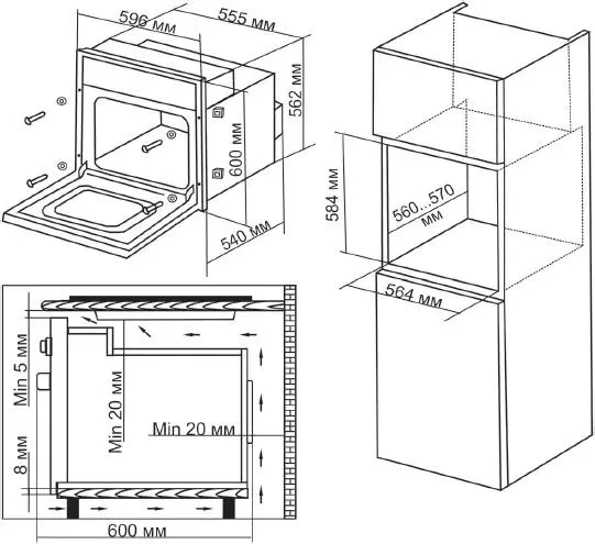 Режимы духовки подсветка, верхний и нижний нагрев, верхний и нижний нагрев + конвекция, нижний нагрев, гриль, гриль + конвекция, разморозка, нижний нагрев + конвекция, верхний нагрев + конвекция