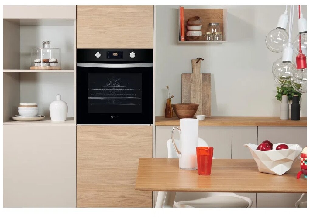 Электрический духовой шкаф Indesit IFE 4841 J BL со встроенным дисплеем и сенсорными переключателями, позволяющими каждой хозяйке с максимальной точностью установить необходимые параметры предстоящего кулинарного процесса. Телескопические направляющие обеспечивают выдвижение противня одновременно с открытием дверцы духовки, что, в свою очередь, препятствует образованию ожогов на руках.