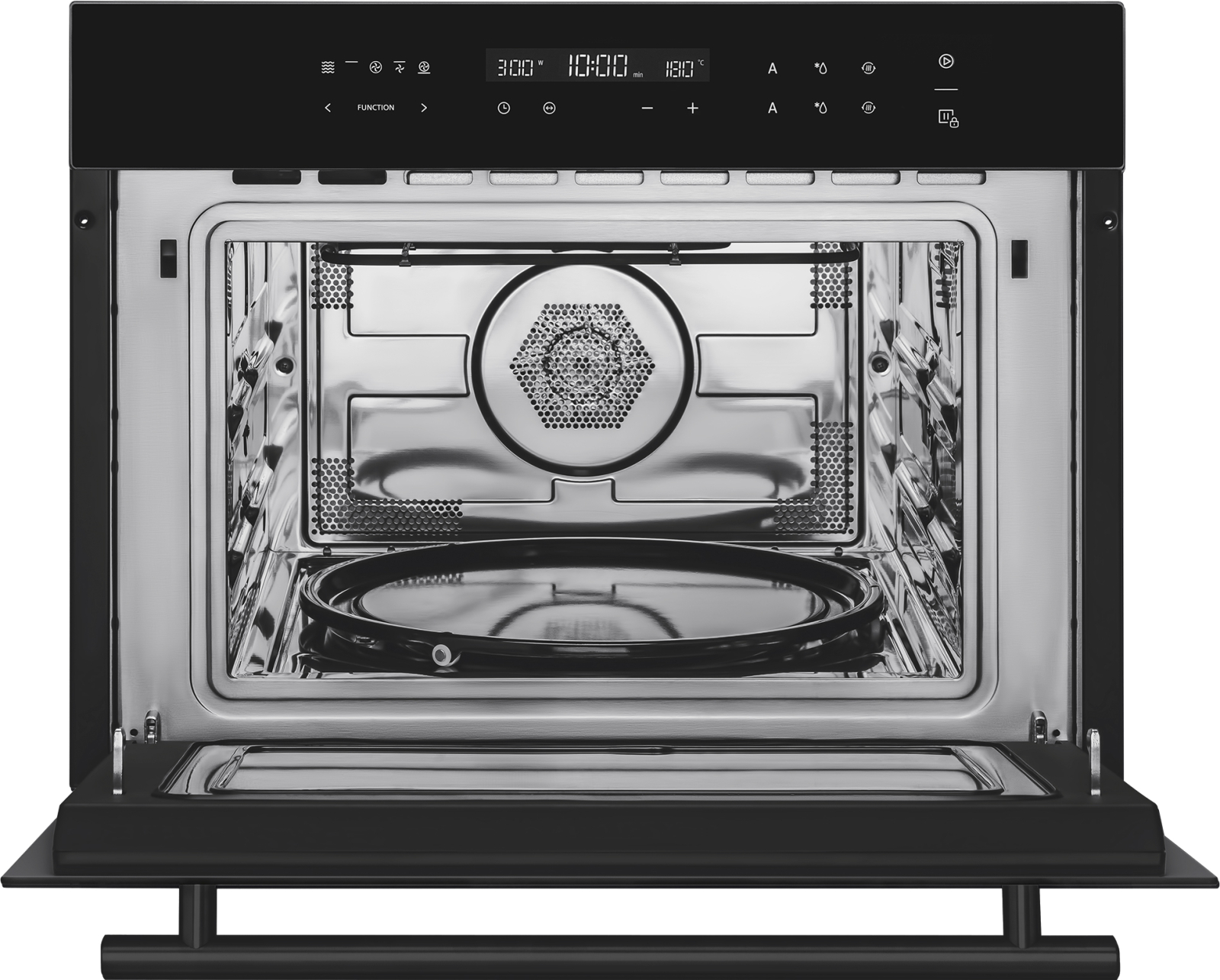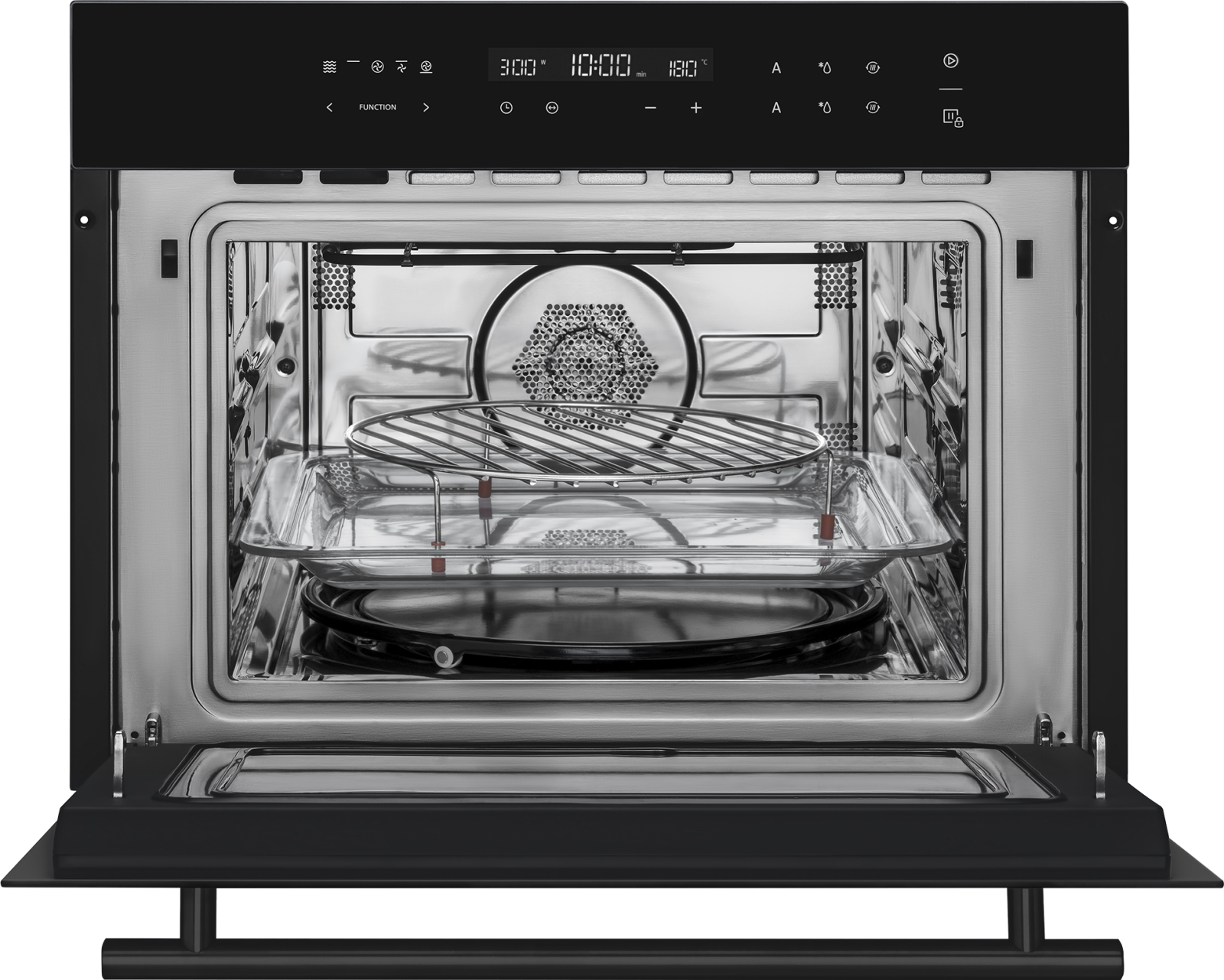 Режимы приготовления: гриль, гриль с конвекцией, нижний нагрев и конвекция, горячий воздух (конвекция), микроволны и горячий воздух, микроволны и гриль с конвекцией, микроволны и гриль, микроволны с нижним нагревом и конвекцией