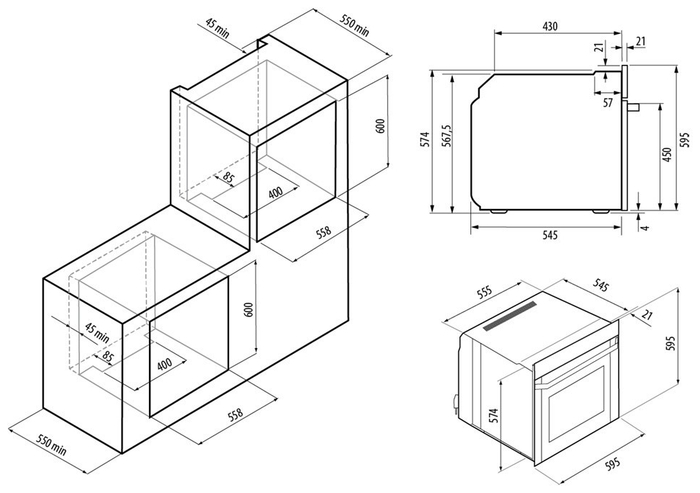 - нижний нагрев, верхний нагрев + нижний нагрев, большой гриль