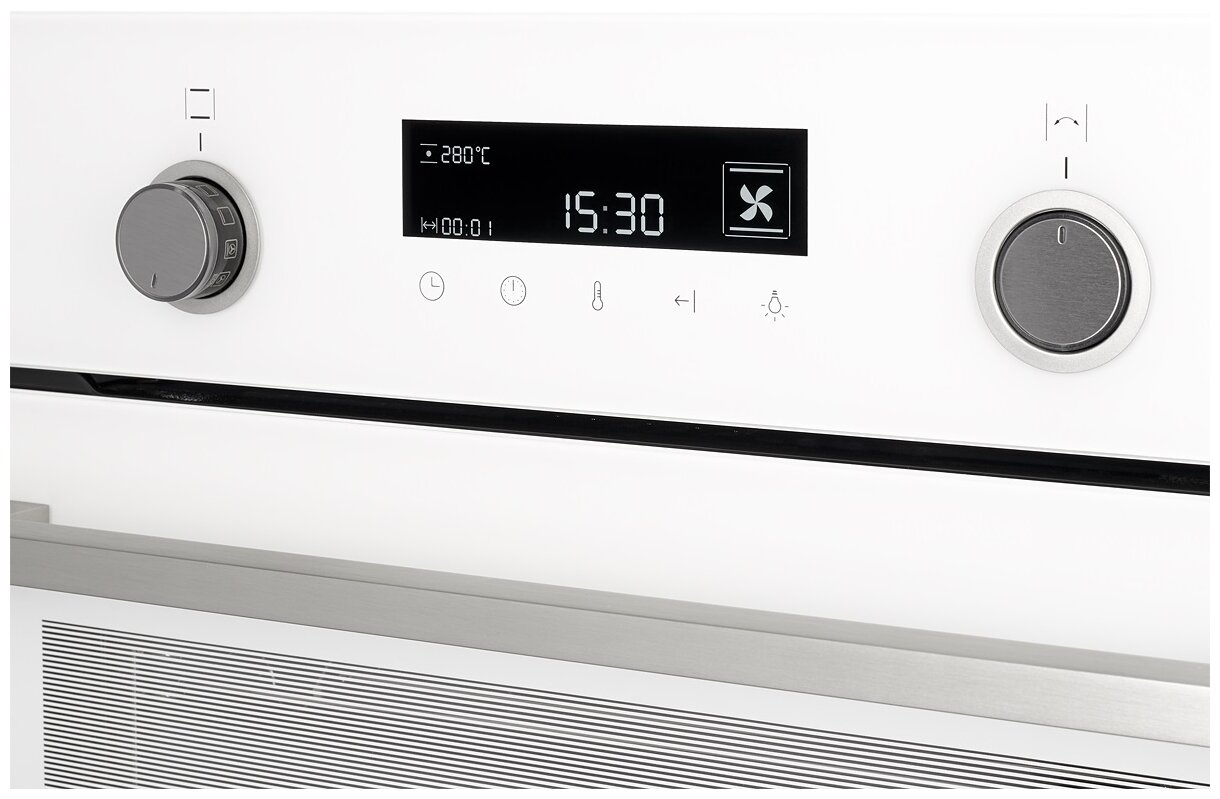 Режимы работы конвекция, конвекция ECO, конвекция + нижний нагрев, нижний нагрев, верхний нагрев + нижний нагрев, верхний нагрев + нижний нагрев + конвекция, верхний нагрев + гриль + конвекция, верхний нагрев + гриль, гриль, очистка