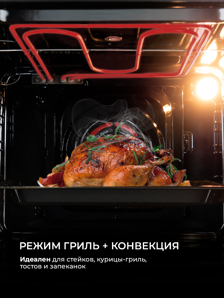 Гриль, Гриль с конвекцией, Нижний нагрев, Нижний нагрев с конвекцией, Подсветка, Традиционный, Традиционный нагрев + конвекция
