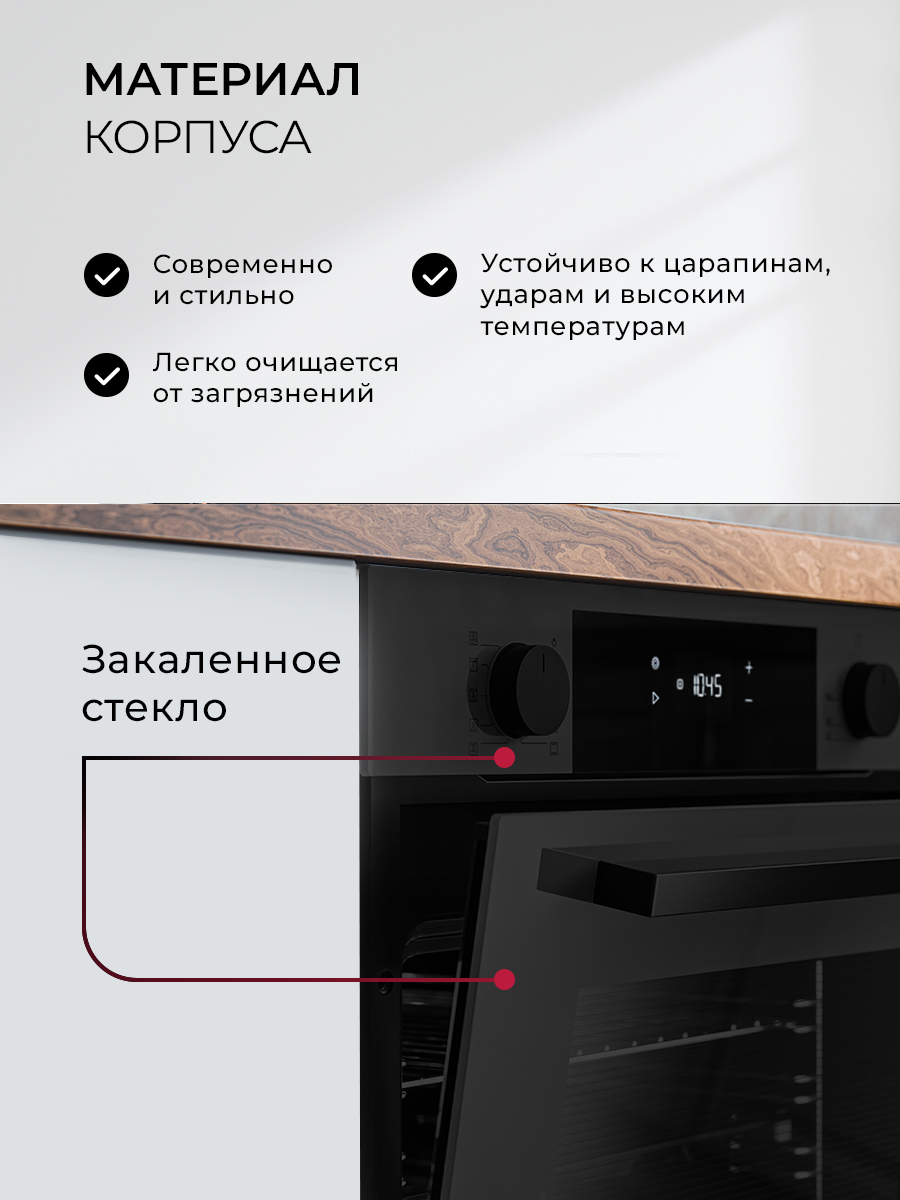 Верхний нагрев, Верхний нагрев с конвекцией, Гриль, Нижний нагрев, Нижний нагрев с конвекцией, Подсветка, Размораживание, Традиционный, Кольцевой нагрев с конвекцией, Традиционный нагрев + конвекция