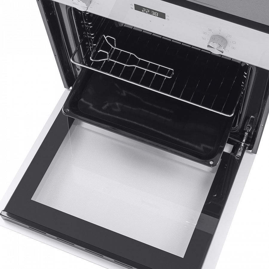 Особенности: Трамп-линии на внутреннем стекле дверцы, боковые направляющие, программатор: электронный сенсорный, духовой шкаф оснащен тяжелыми, цельнометаллическими ручками управления и ручкой дверцы, в отделке лицевой части блока управления применяется жаропрочное стекло.