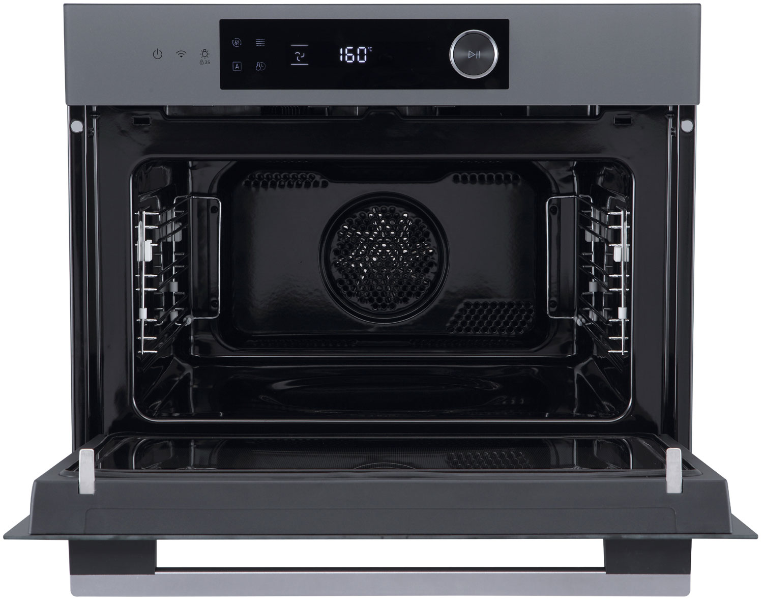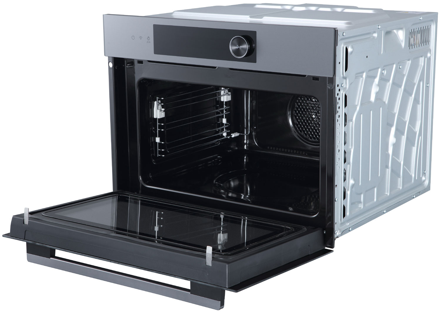 Принадлежности: 1 хромированная решетка, 1 противень 45 мм, 1 стеклянный противень