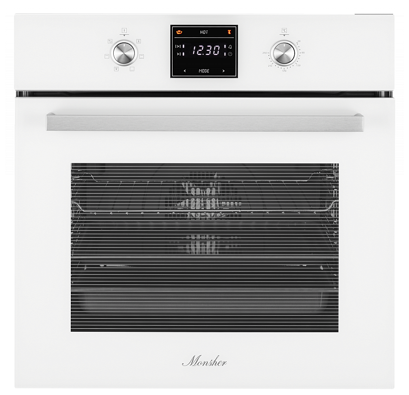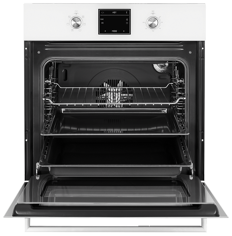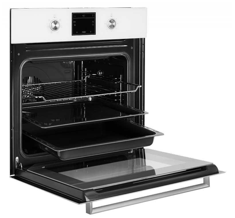 коллекция High-Tech; направляющие для противней: хромированные, съемные; размер ниши для встраивания в колонну (ВхШхГ): 59×56×58 см; размер ниши для встраивания под столешницу (ВхШхГ): 59×56×57 см