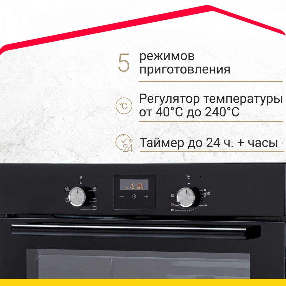 Режимы приготовления Верхний нагрев / Верхний+нижний нагрев / Нижний нагрев / Верхний + нижний нагрев + конвекция / Нижний нагрев+Конвекция