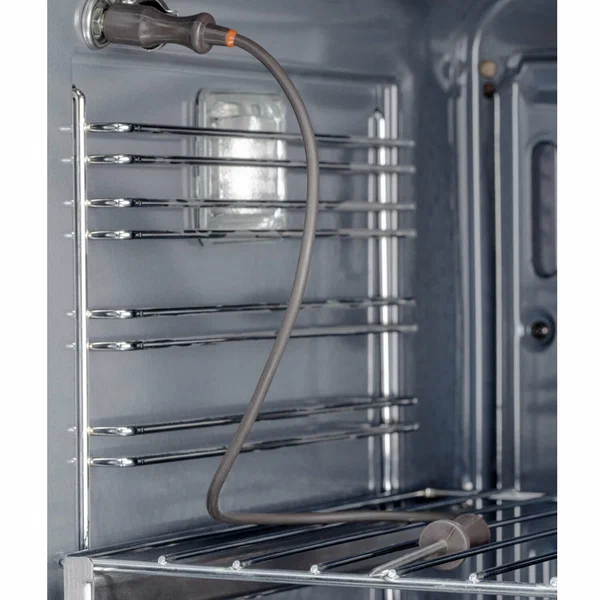 Особенности духовки, плиты: Встроенные часы, Дисплей, Доводчик дверцы духовки, Термощуп, Хромированные направляющие