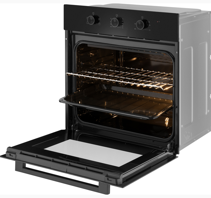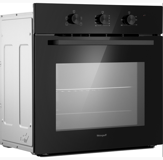 Электрический духовой шкаф от Weissgauff, выполненный в чёрном цвете, оснащённый механическими поворотными рукоятками Soft Switch, двойным остеклением дверцы и 4 режимами, буквально олицетворяет собой уверенность в надёжном и функциональном оснащении вашей кухни!
