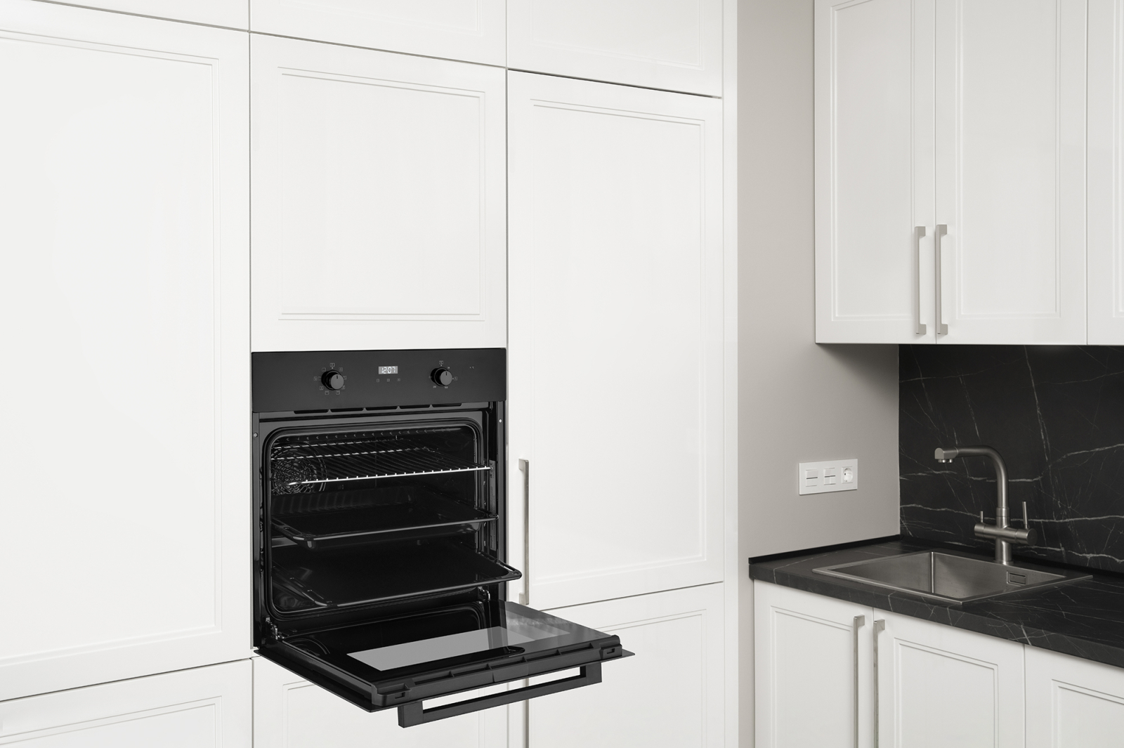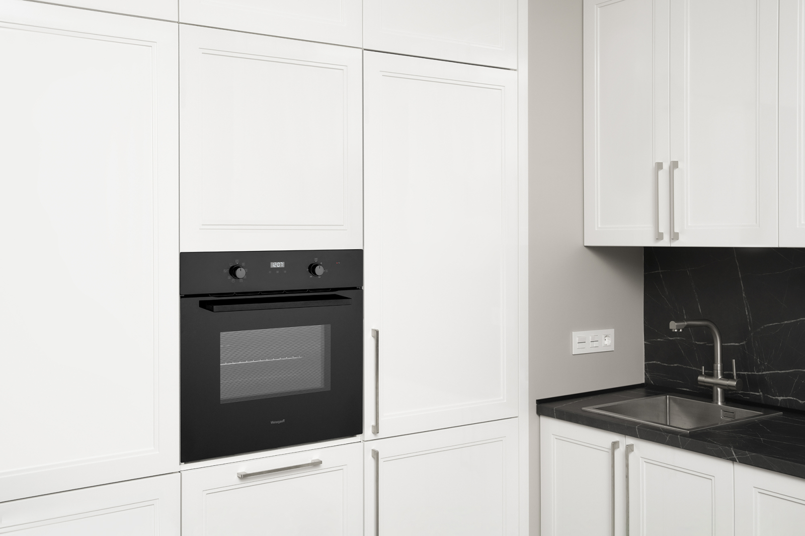Электрический духовой шкаф от Weissgauff, выполненный в чёрном цвете, оснащенный утапливаемыми рукоятками PIPO, сенсорным программатором, а также крупным дисплеем с индикацией белого цвета, имеет 3 стекла в дверце, а богатый выбор программ откроет перед вами сразу 9 режимов, каждый из которых раскроет новые возможности приготовления вкуснейших блюд!