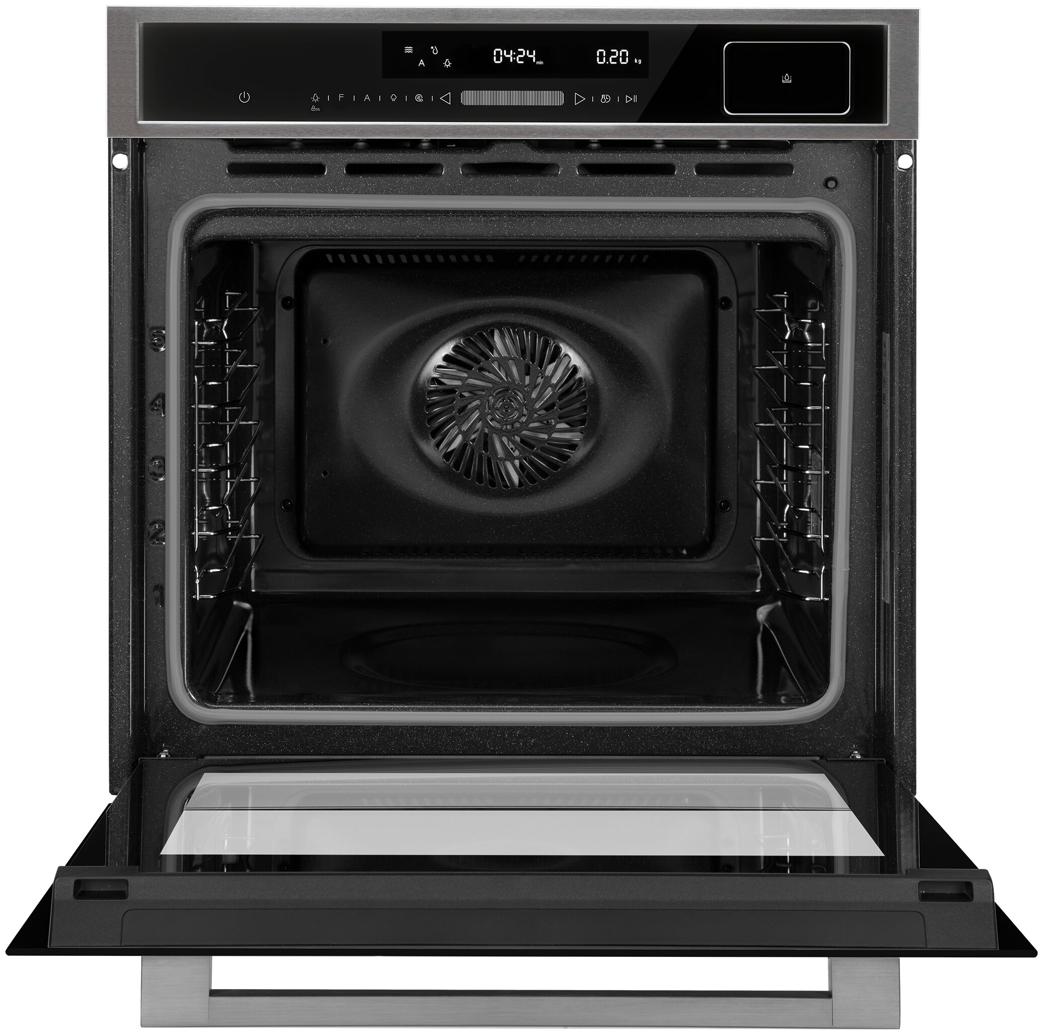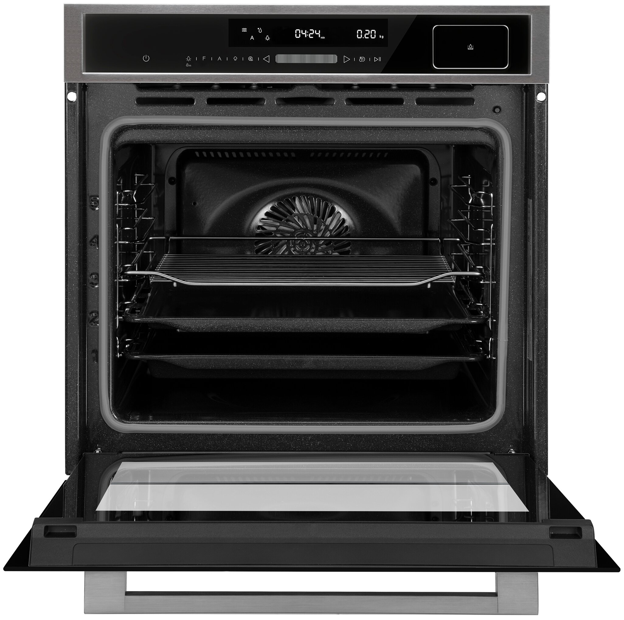 мягкие доводчики дверцы; 13 функций духового шкафа: Верхний и нижний нагрев (традиционное приготовление), Конвекция, ЭКО, Верхний и нижний нагрев + конвекция, Гриль, Двойной гриль с конвекцией, Двойной гриль, Режим для пиццы, Нижний нагрев, Разморозка, Тесто, Термощуп и дополнительная функция Пар; тип часов: электронные; вентилятор охлаждения