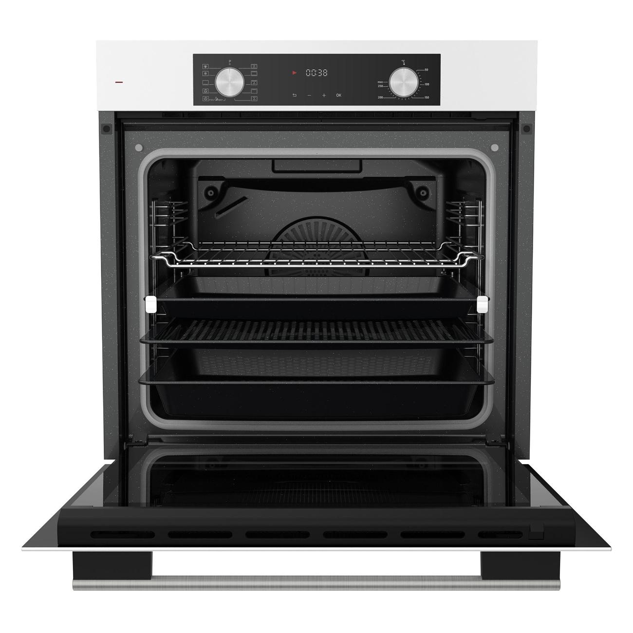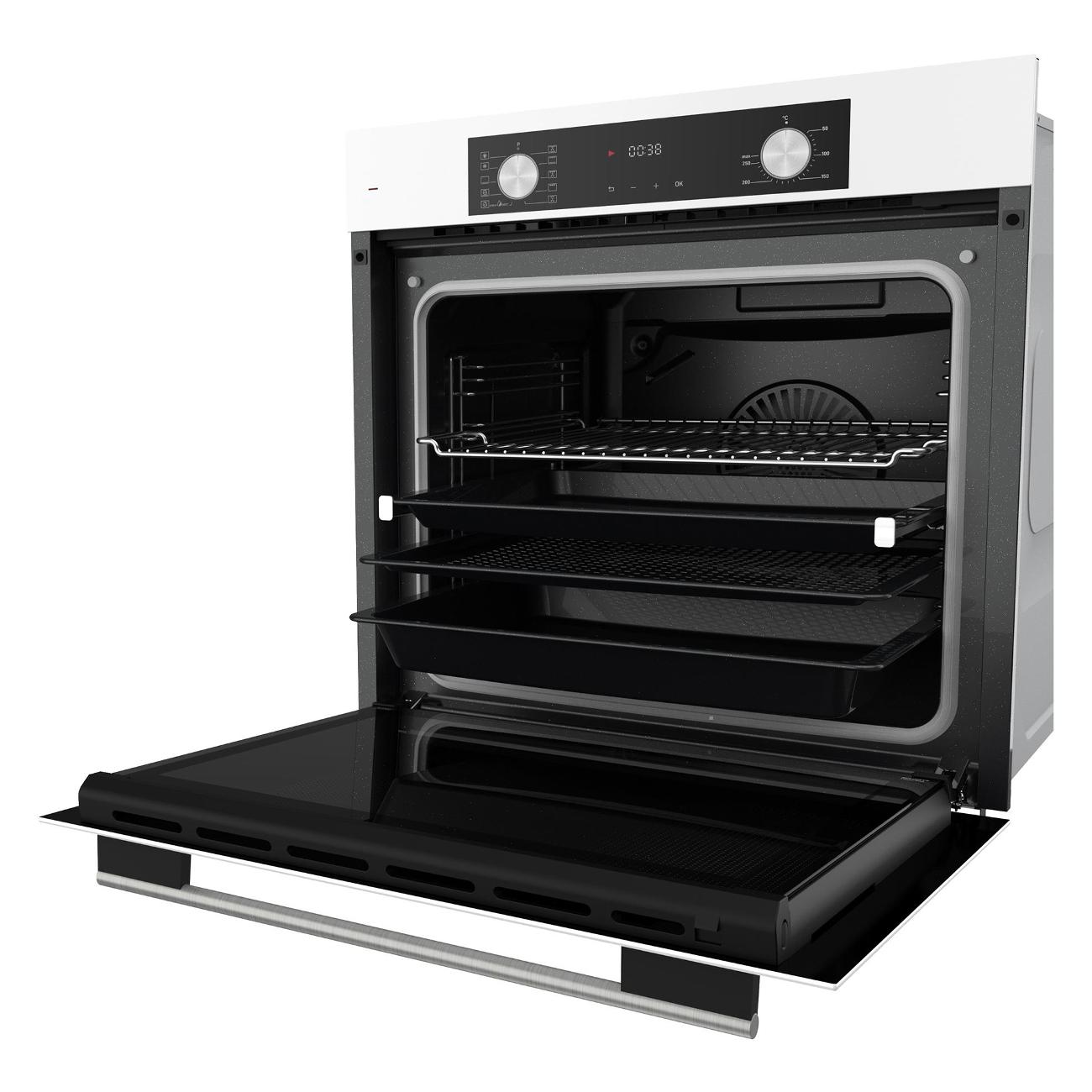 Многоуровневое приготовление. Отсрочка старта приготовления. Двойные стекла, внутреннее бесщелочное энергоэффективное Е-стекло. Съемная дверца.Режимы ТУРБО и ЭКО. Функция аэрогриль без масла/пицца/сушка мяса и фруктов FryArt. LED дисплей с белой подсветкой. Встроенная система автоматического охлаждения. Защитное отключение для безопасности. Таймер и будильник. Утапливаемые стальные поворотные ручки. Система 6 уровней решеток и телескопические направляющие. Очистка: гидролиз