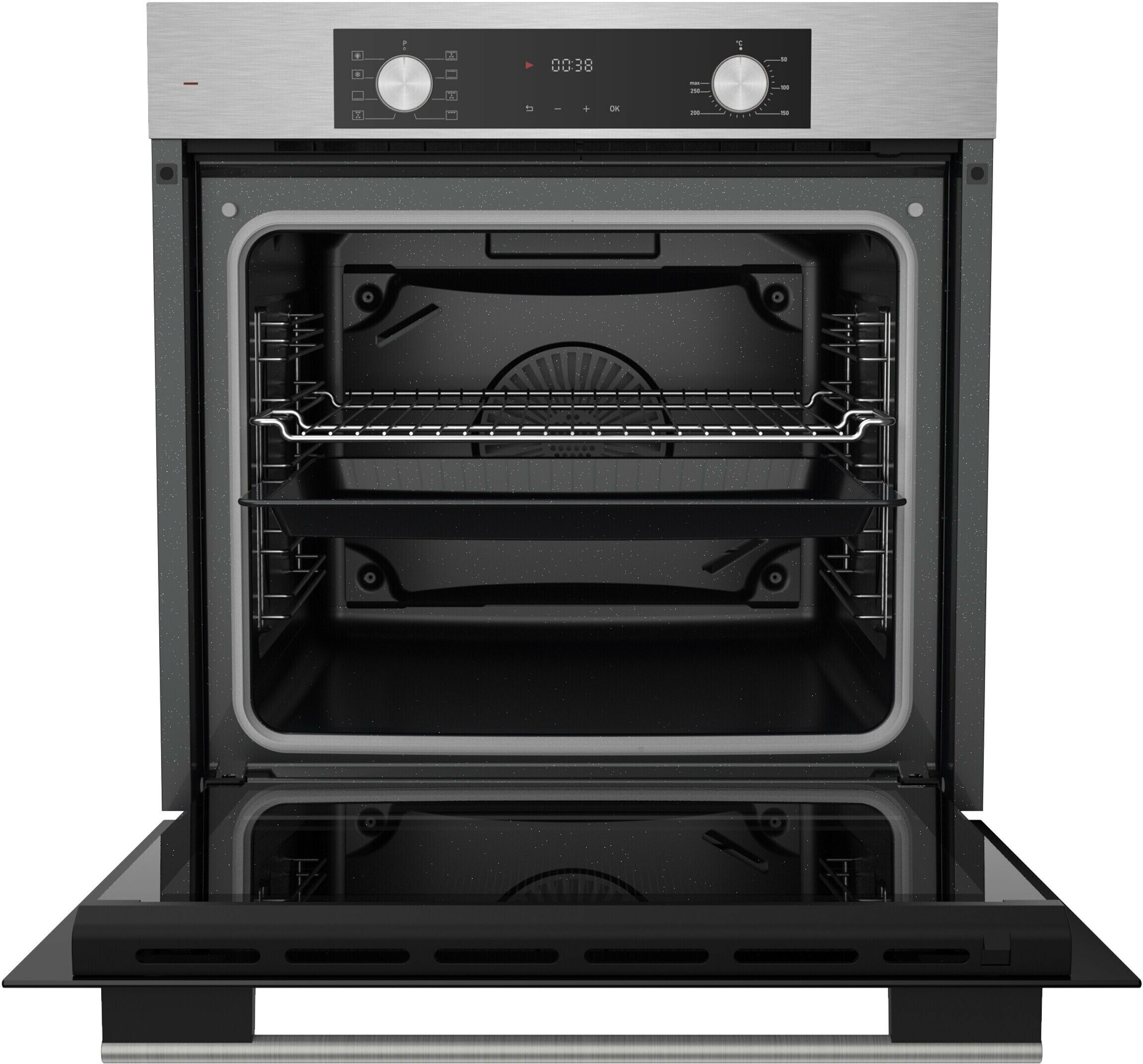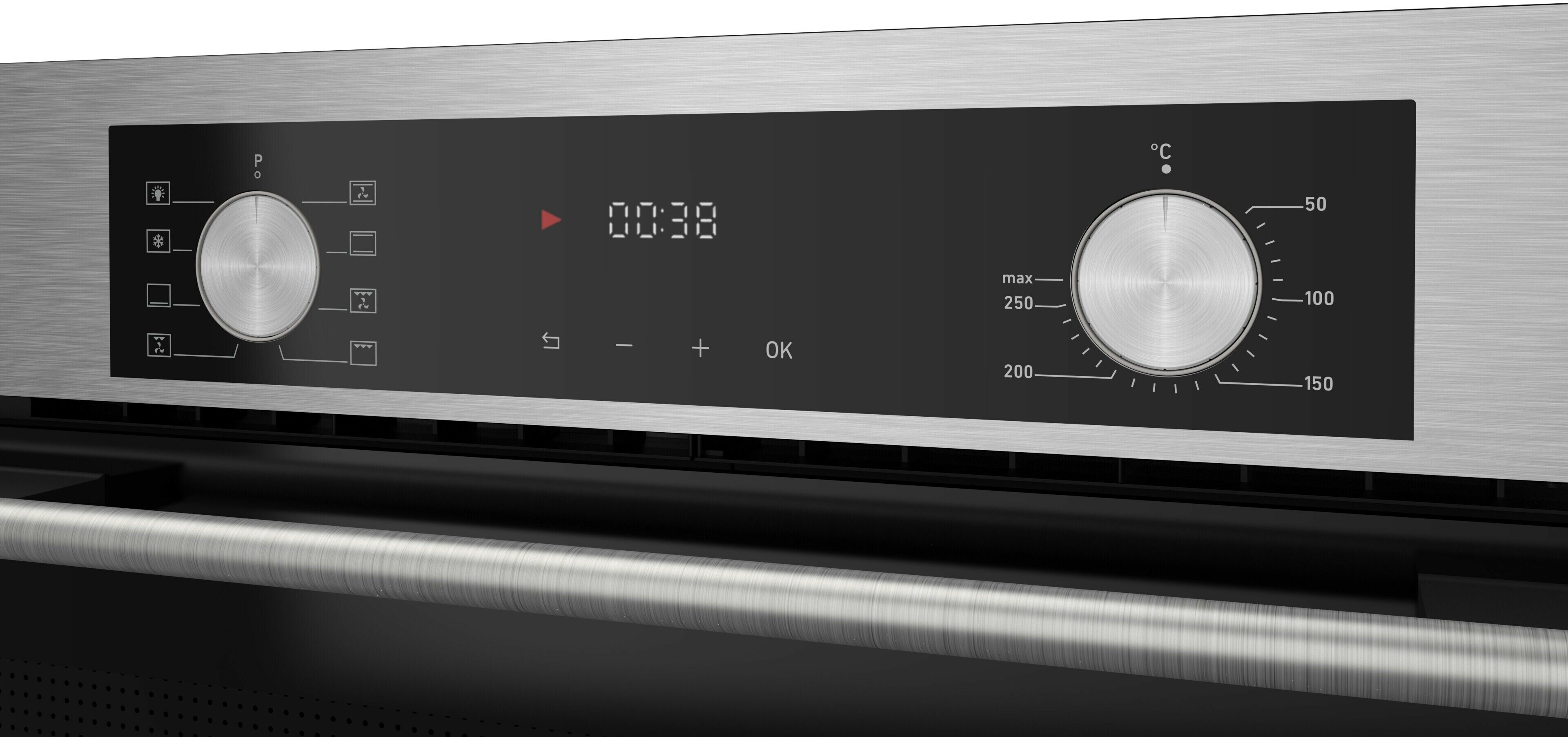 Многоуровневое приготовление. Отсрочка старта приготовления. Двойные стекла, внутреннее бесщелочное энергоэффективное Е-стекло. Режим ЭКО. Съемная дверца.LED дисплей с белой подсветкой. Встроенная система автоматического охлаждения. Защитное отключение для безопасности. Таймер и будильник. Утапливаемые стальные поворотные ручки. Система 6 уровней решеток. Очистка: гидролиз