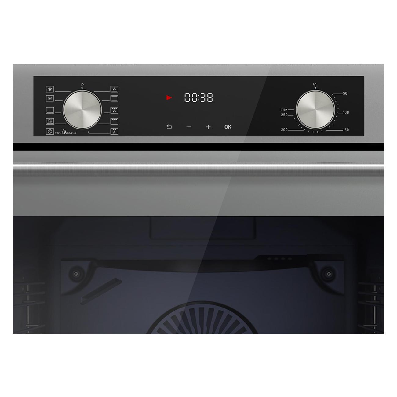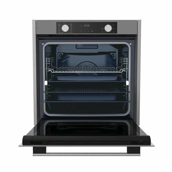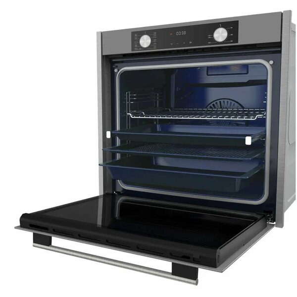 Многоуровневое приготовление. Отсрочка старта приготовления. Тройные стекла, внутреннее бесщелочное энергоэффективное Е-стекло. Съемная дверца. Система плавного закрывания дверцы Soft Close с доводчиком. Режимы ТУРБО и ЭКО. Функция аэрогриль без масла/пицца/сушка мяса и фруктов FryArt. LED дисплей с белой подсветкой. Встроенная система автоматического охлаждения. Защитное отключение для безопасности. Таймер и будильник. Утапливаемые стальные поворотные ручки. Автоматическое включение света при открытии. Система 6 уровней решеток и телескопические направляющие. Очистка: гидролиз