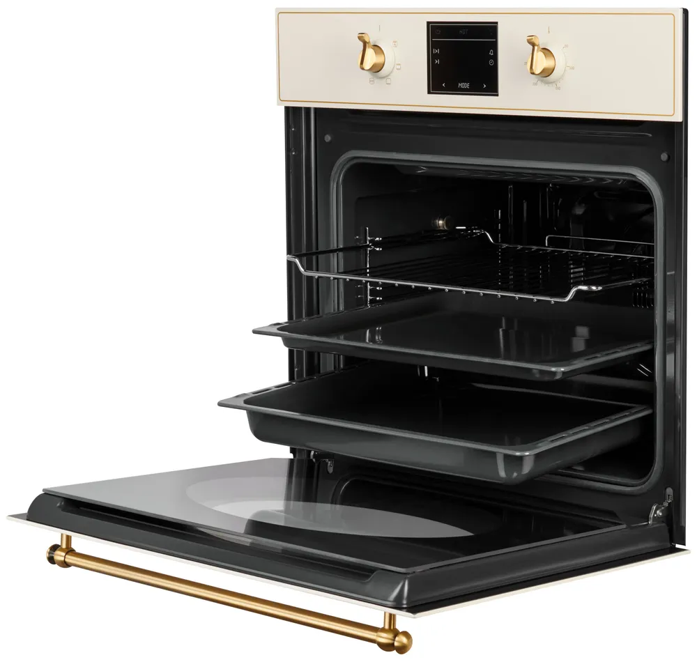 Особенности духовки, плиты: Полностью стеклянная внутренняя дверца, Хромированные направляющие