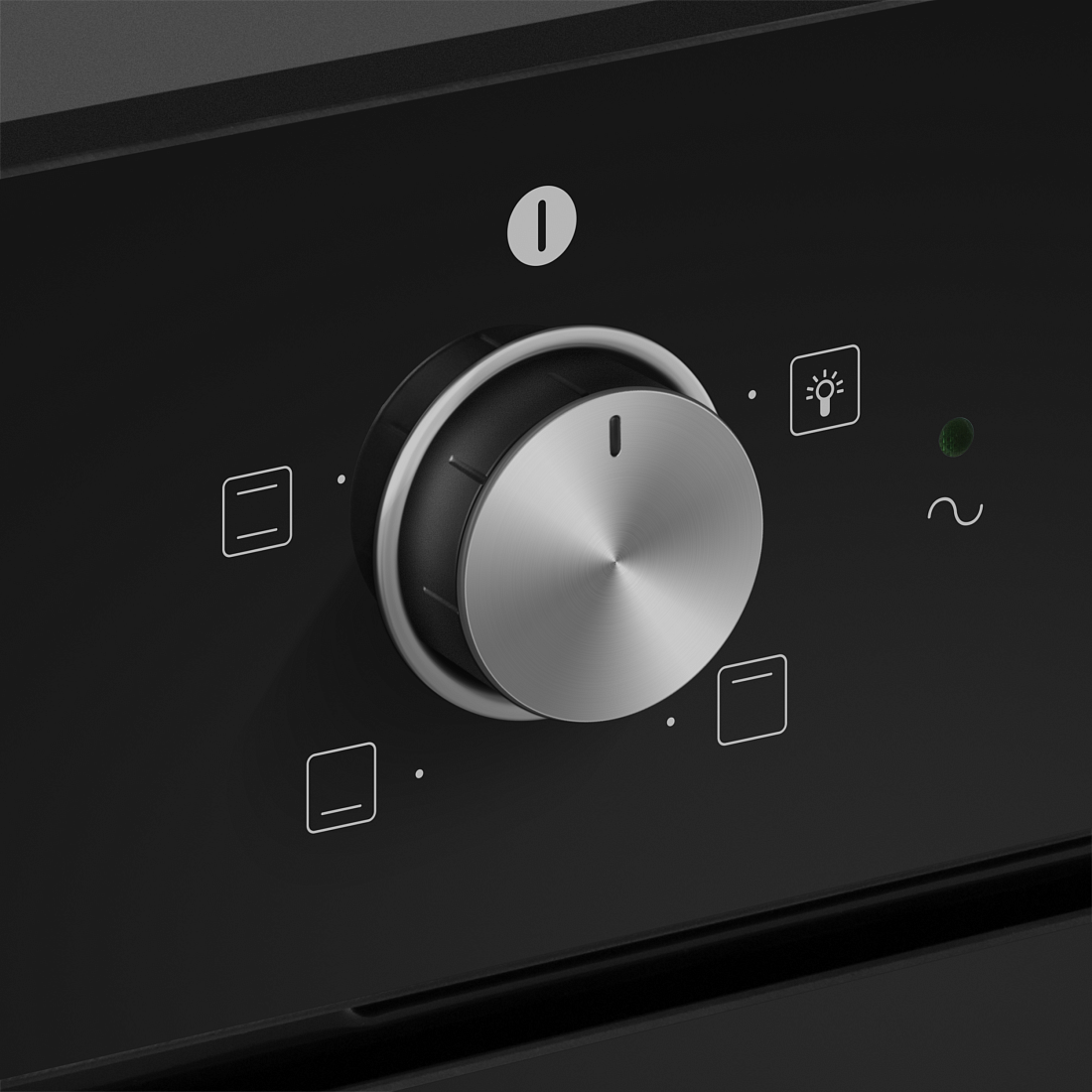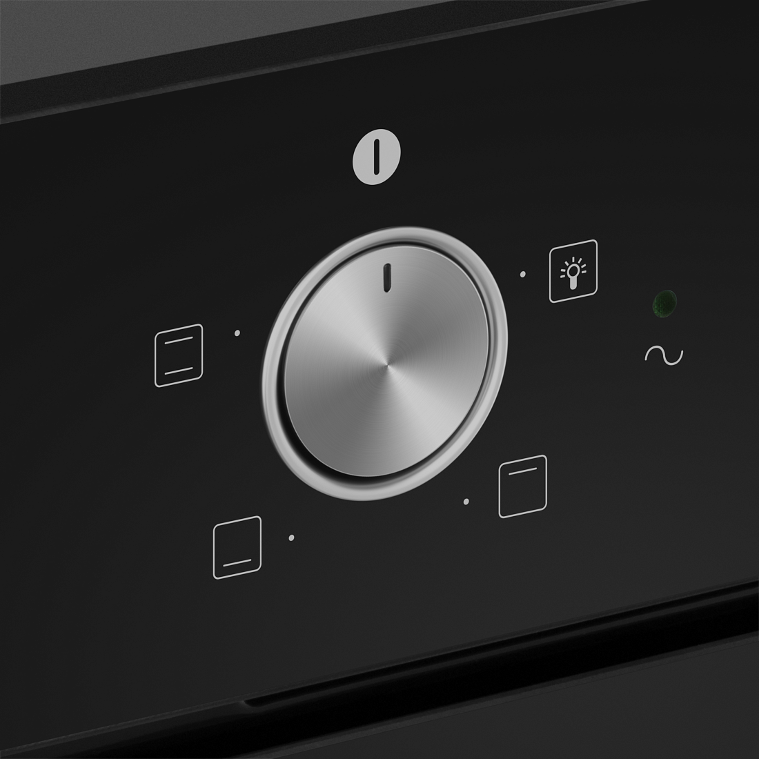 Встраиваемый духовой шкаф с фронтальной панелью из высококачественного жаропрочного тонированного стекла. Дизайн модели дополнен утапливаемыми регуляторами PUSH PULL увеличенного диаметра.
