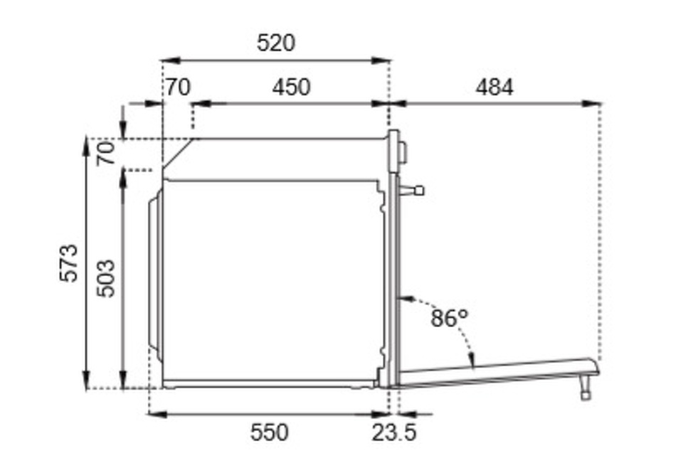 Наполнение духового шкафа 1 усиленная решетка, 1 глубокая усиленная решетка, 1 эмалированный противень, 2 боковые лампы освещения