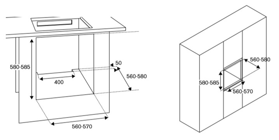 Наполнение духового шкафа 1 усиленная решетка, 1 усиленная глубокая решетка, 1 эмалированный противень, 2 боковые лампы освещения