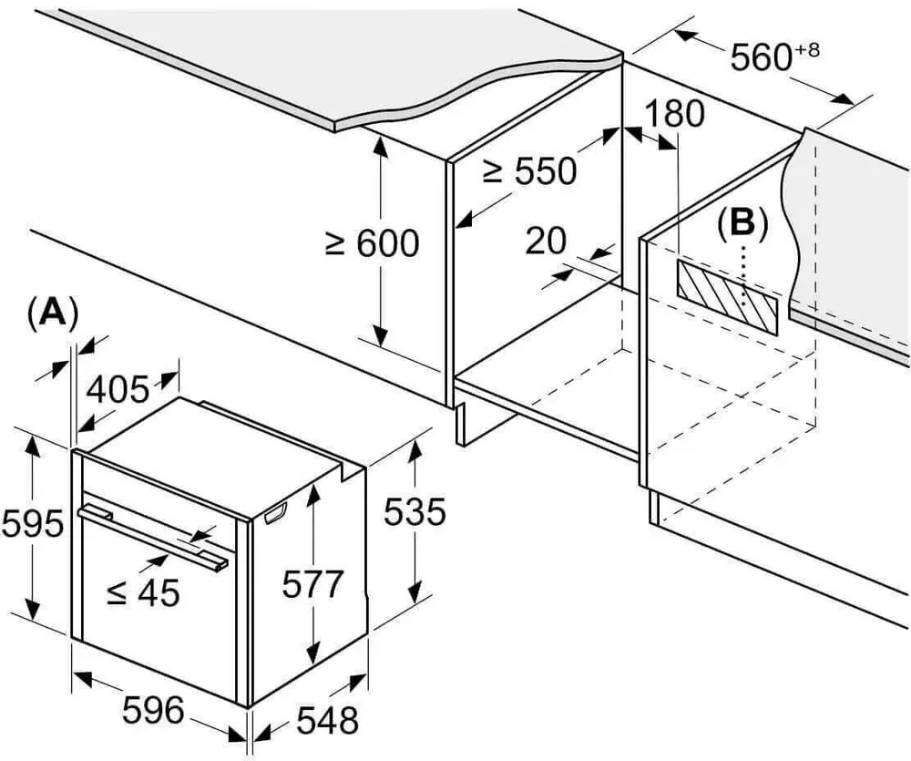 Размеры для встраивания 56x55x60см