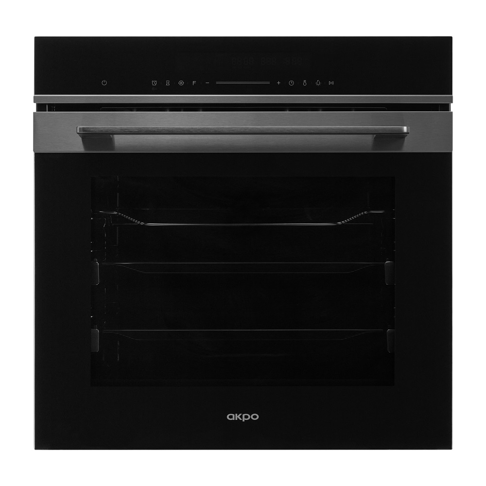 Особенности Съемная дверца с тройным стекло и доводчиком / Алюминиевая черная ручка дверцы / Каталитическая очистка / 3D-конверкция / Две пары полновыдвижных телескопических направляющих / 5 уровней хромированных направляющих для противней / Быстрый разогрев / Многофункциональный таймер / 13 режимов работы / Цифровой LED дисплей белого цвета