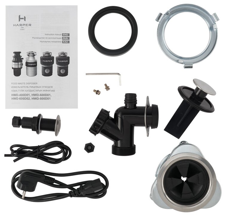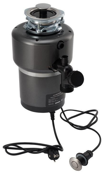 Электрический измельчитель бытовых отходов Harper HWD-800D01 поможет вам сократить объём выбрасываемого бытового мусора, а также исключит появление неприятных запахов, возникающих из-за гниения пищевых продуктов в мусорном ведре и в контейнерах для сбора мусора. Измельчитесь Harper HWD-800D01 имеет мощность 750 Вт (1 л. с.), производительность до 5,2 кг в минуту и вместительную камеру на 1,5 литра из нержавеющей стали. Для защиты пользователя от поражения электрическим током, включение и выключение измельчителя осуществляется с помощью безопасного пневмовыключателя.
