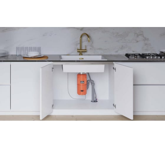Легкий и тонкий агрегат может быстро и безопасно измельчить и вместе с водой смыть в канализационную систему бытовые отходы.