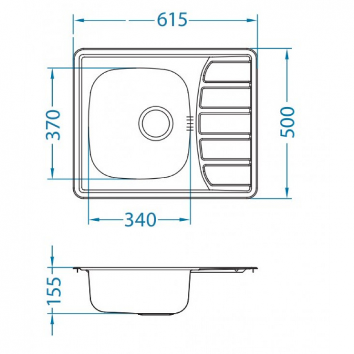 Размер мойки: 61.5x50 см
