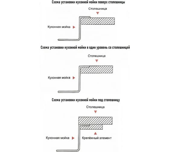 Универсальный монтаж - врезной, подстольный и в один уровень со столешницей