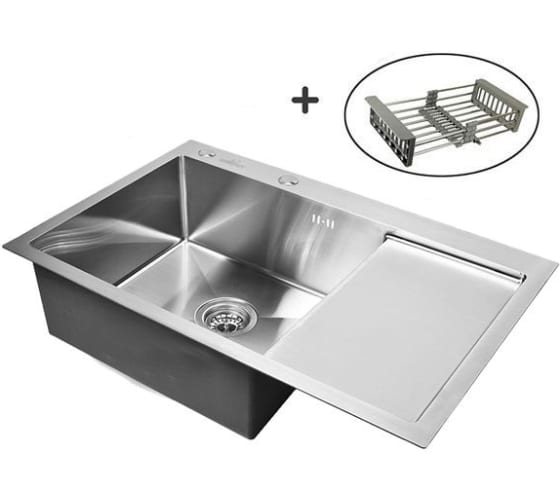 Кухонная мойка из нержавеющей стали WISENT 7851-L 78x51 см, с раздвижным коландером WS37851-L/W302644/WGER010 изготовлена из нержавеющей стали SUS304. Толщина листа чаши - 1 мм, толщина листа борта - 3 мм.