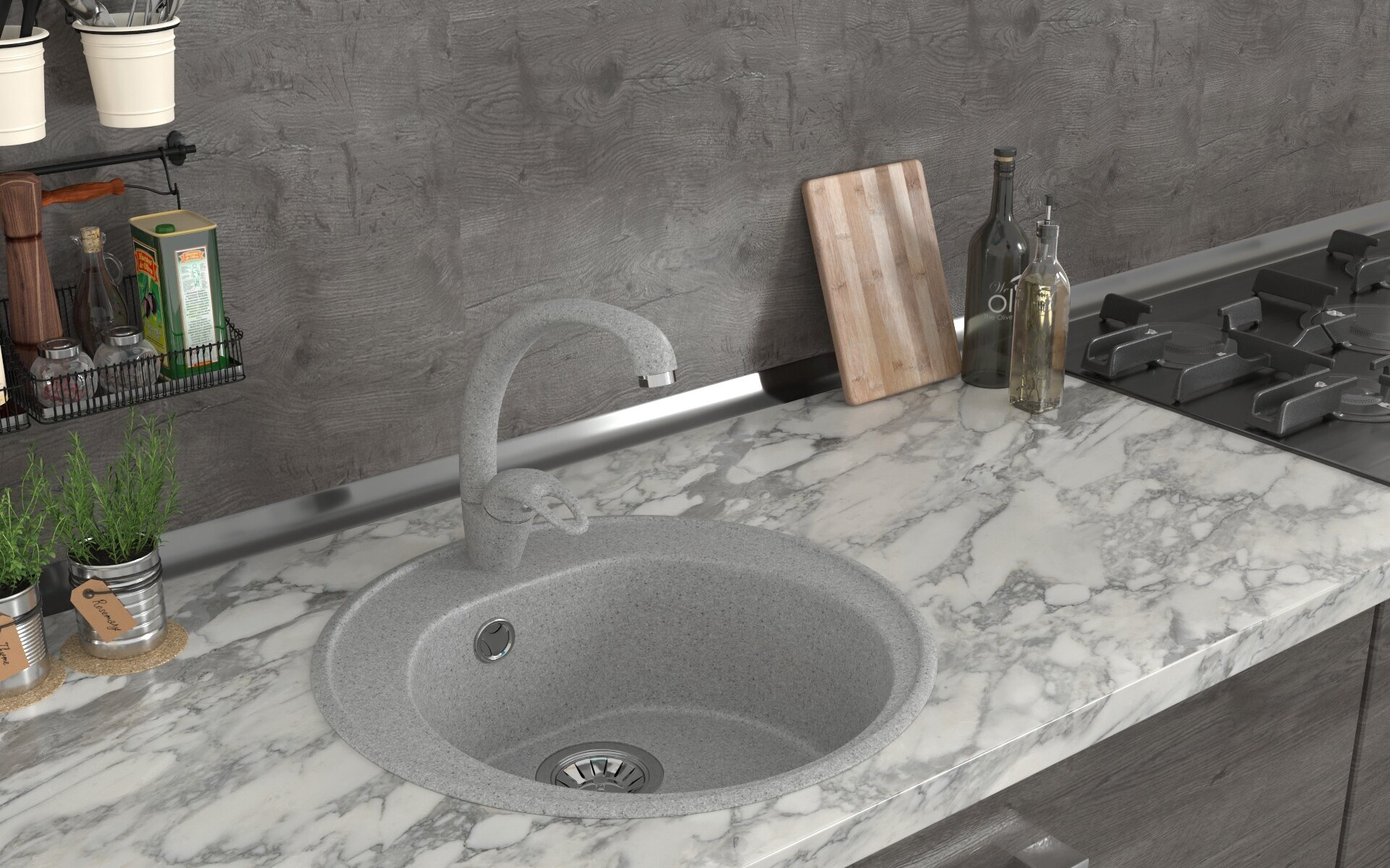 Универсальная кухонная раковина из искусственного камня, которая по прочности не уступает натуральному материалу.
