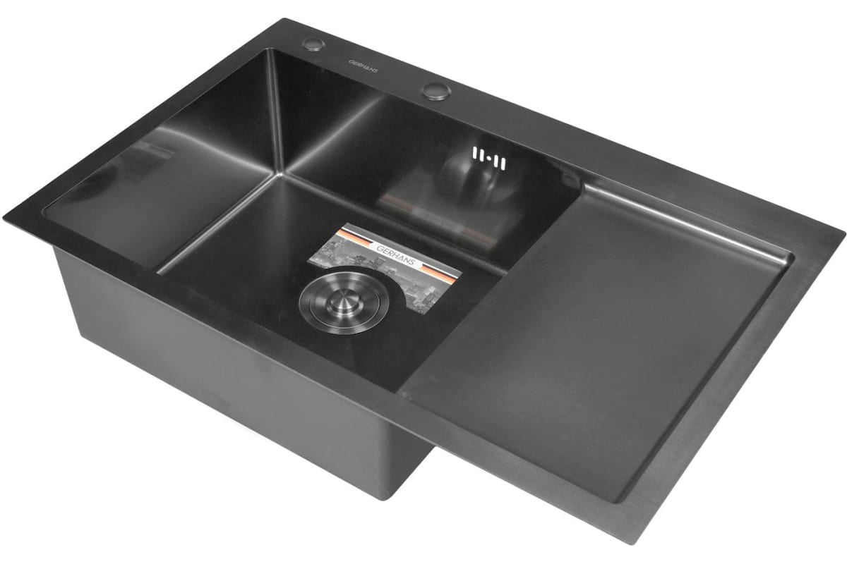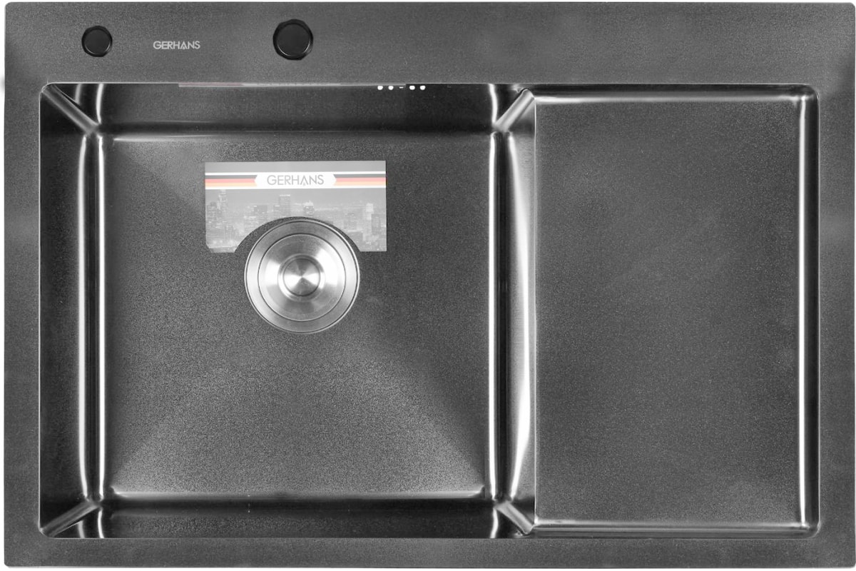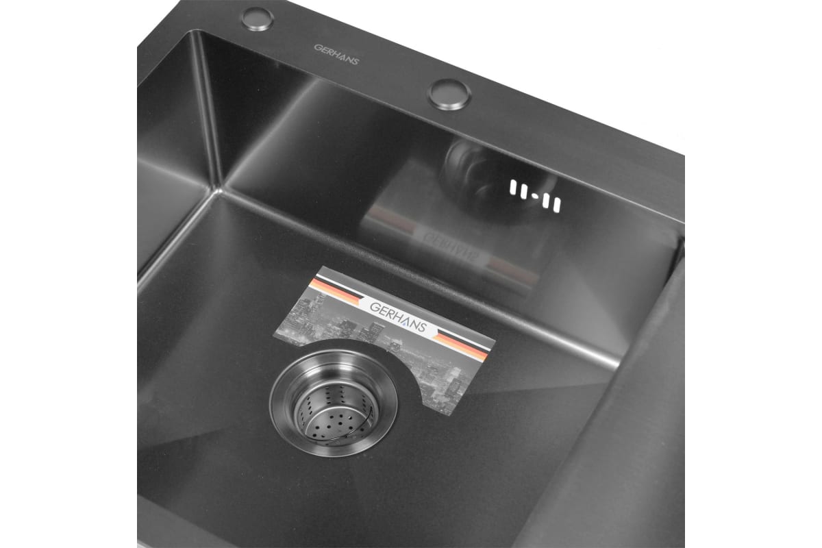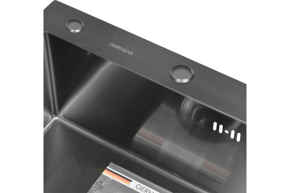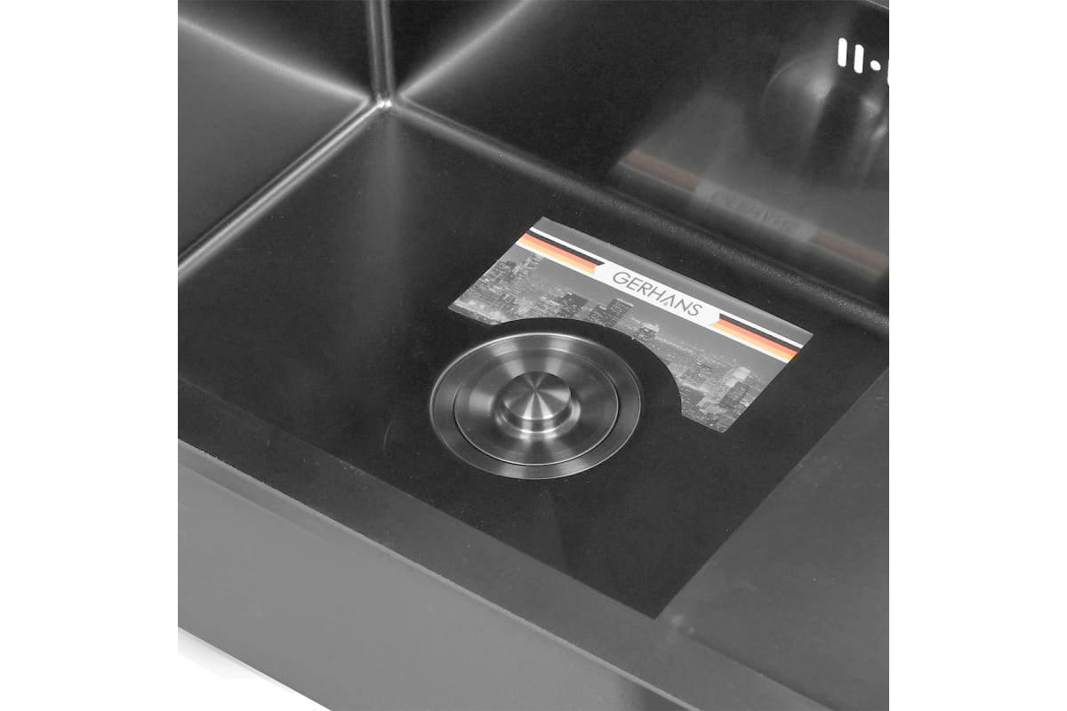 Кухонная мойка из нержавеющей стали Gerhans с PVD покрытием 37851В-L изготовлена из нержавеющей стали SUS304 толщиной от 1 до 3 мм.