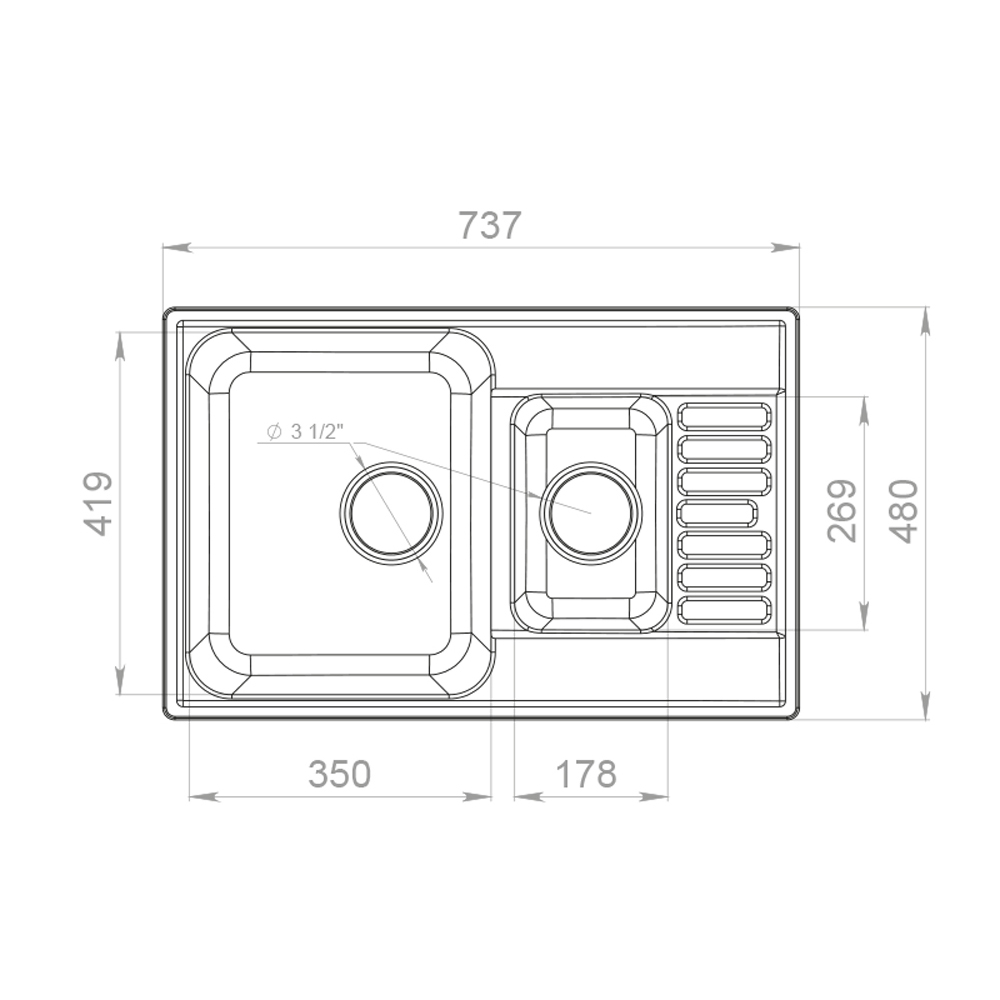 Намеченных отверстий под смеситель