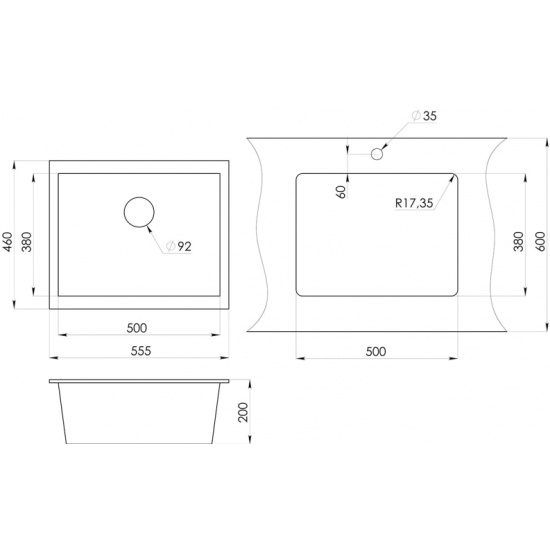 Уникальный дизайн, разработанный компанией GRANULA. Возможность установки: под столешницу, вровень со столешницей, сверху в столешницу. Габариты изделия позволяют осуществить его установку в кухонный шкаф от 600 мм. Чаша мойки (380х500 мм) позволяет мыть в ней посуду практически любых размеров.