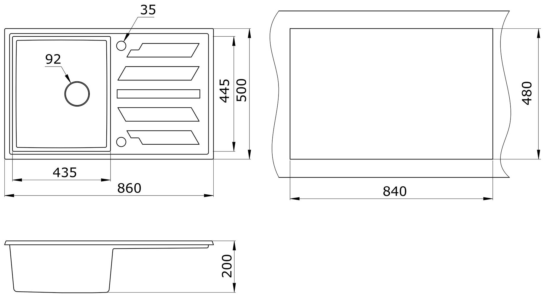 Размеры мойки (ДхШ)
