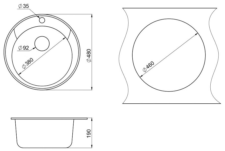- cлив-перелив и корзинчатый вентиль приобретаются отдельно