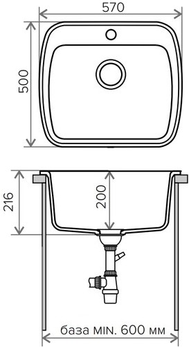 Кухонная мойка Krona Magnet 1B 570*500 black