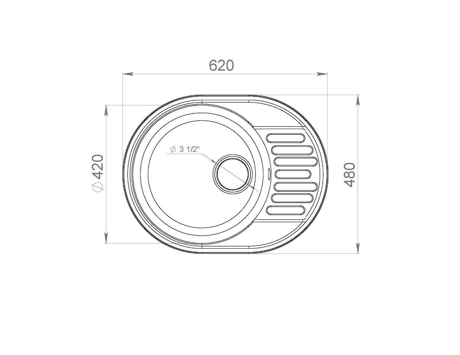 Реверсивная мойка (Отверстие высверливается в зависимости от расположения крыла)