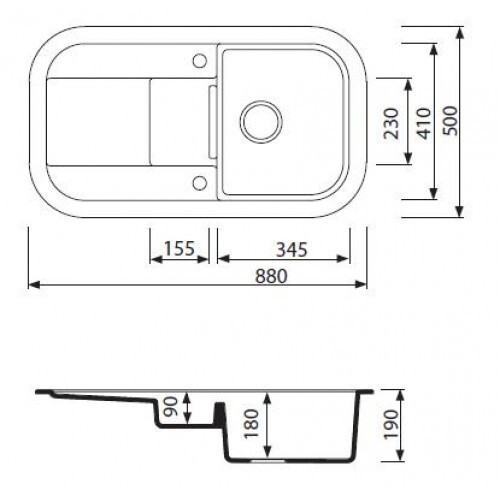 Размер мойки 880х500х190 мм.