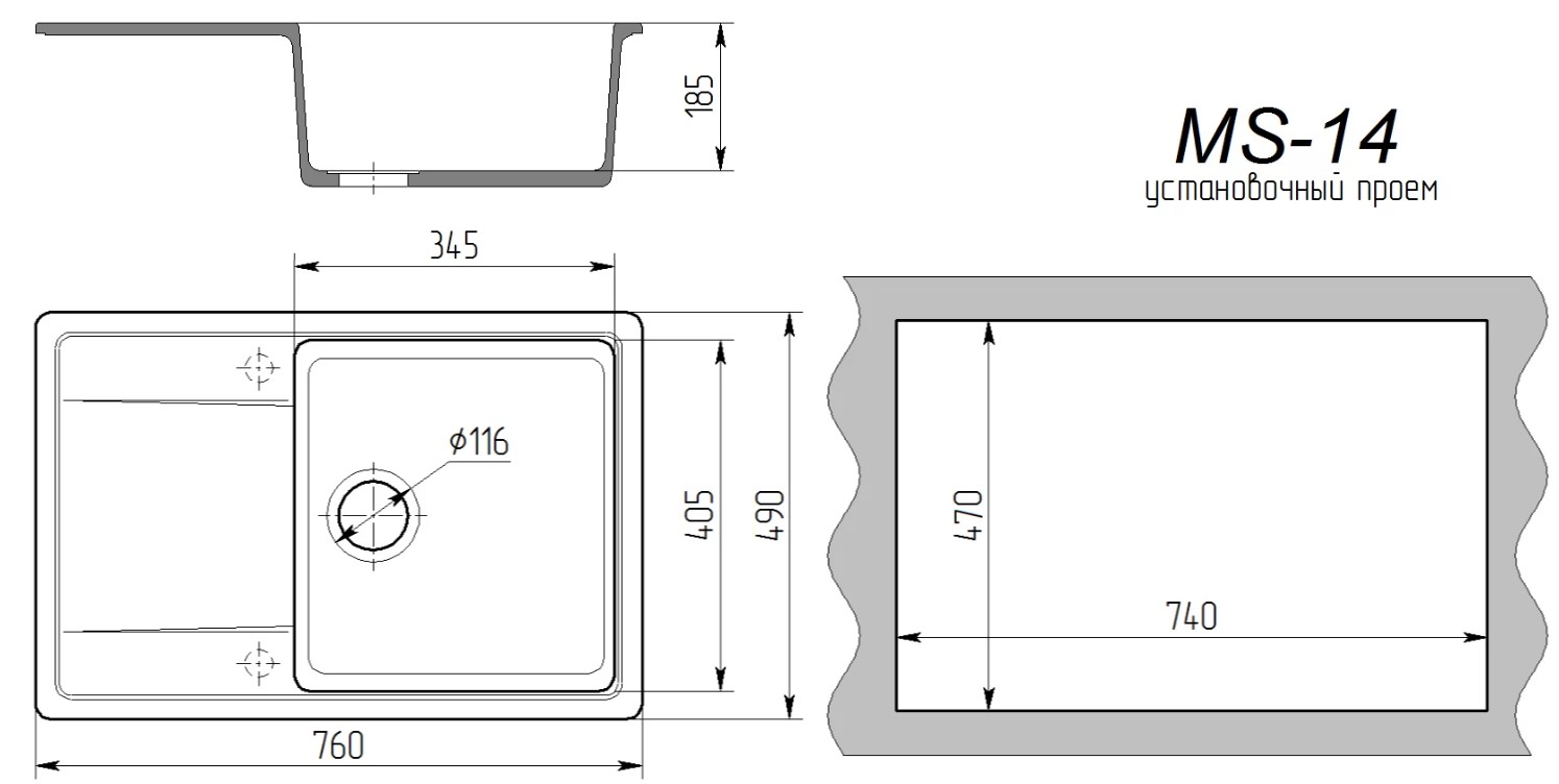 Габариты чаши (Ш/Г/В) 350 x 410 x 190
