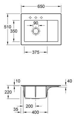 - Размер монтажного отверстия под мойку (ШхГ) 62x48 см