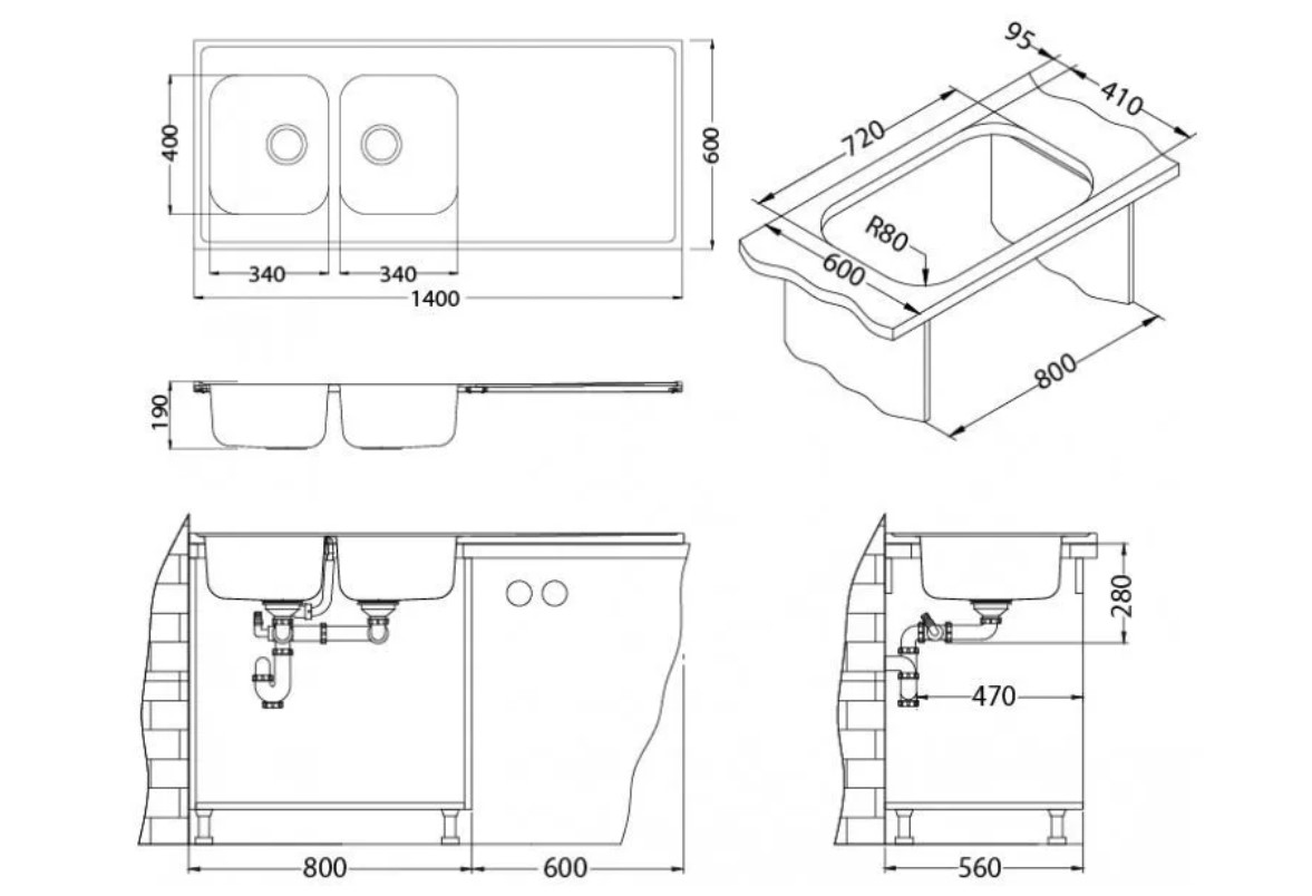 Возможна врезная установка на столешницу. В этом случае, бортики мойки будут выше уровня столешницы на 3 см.Комплектация: Сифон, отводная арматура с двумя корзинчатыми вентилями 3 1/2”.