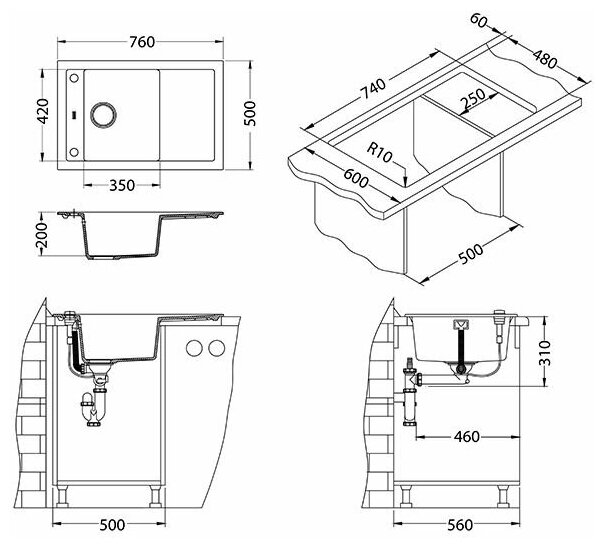 монтаж: классическая врезная (I) / под столешницу (U); в комплекте сифон 114-PP-POPUP Formic одинарный с переливом (1127249)