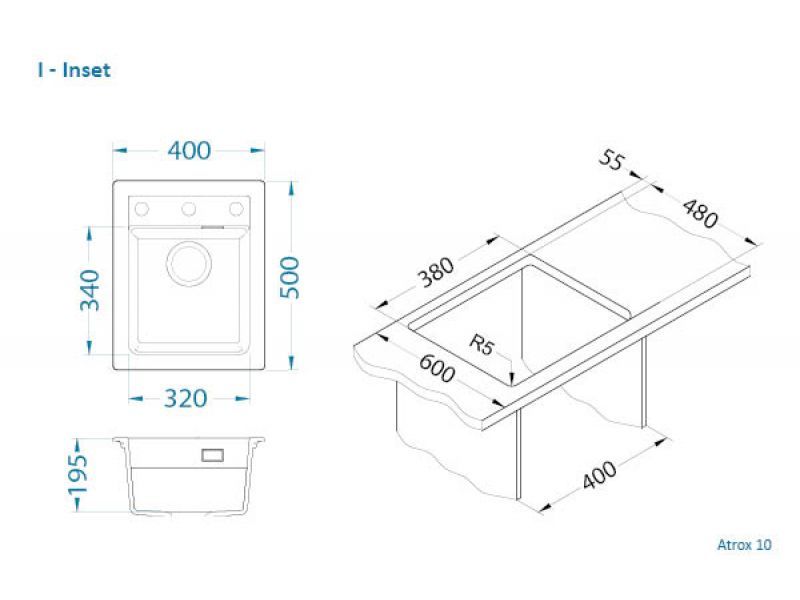 Размер мойки 40х50 см