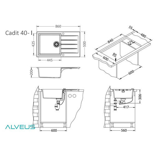 Мойка Alveus Granital Cadit 40 Beige G55 860 X 500 бежевый 1132029
