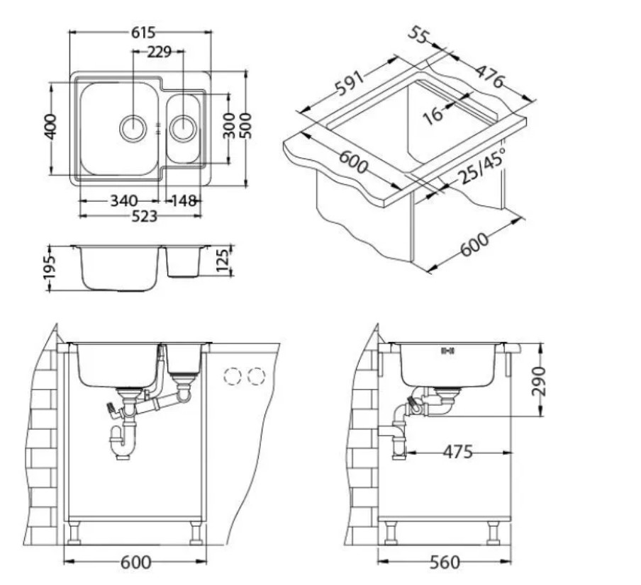Размер мойки : 61.5x50